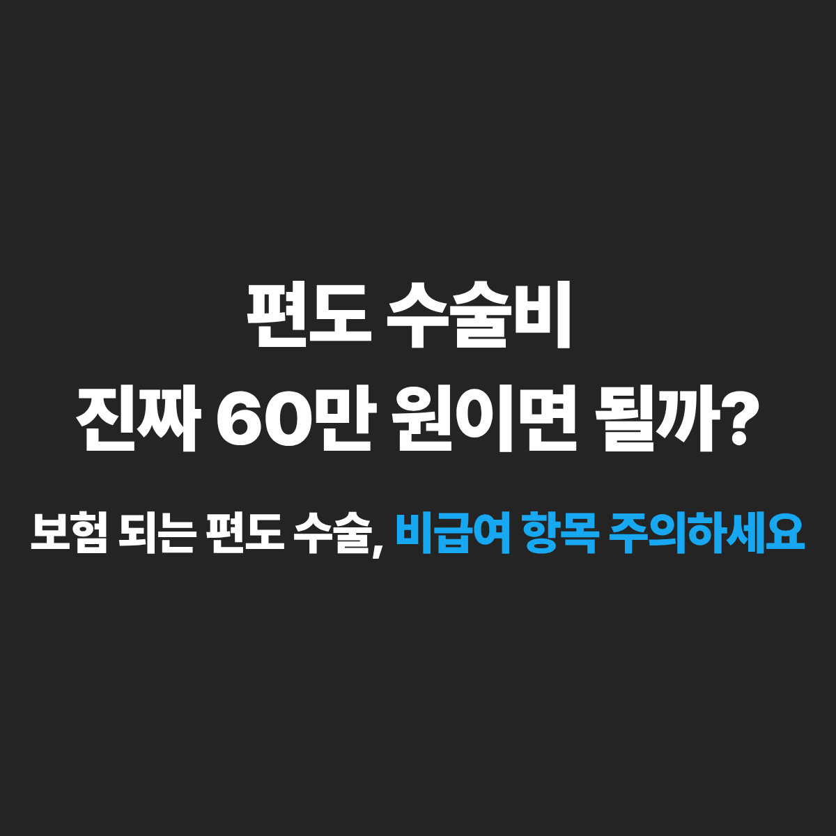 동네 의원인지 큰 대학병원인지에 따라 다르지만, 보통 30만 원에서 60만 원 사이가 가장 많습니다. 여기에는 수술비, 전신마취비, 그리고 2~3일 정도의 입원비와 식사가 모두 포함된 금액입니다.